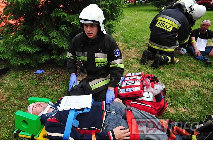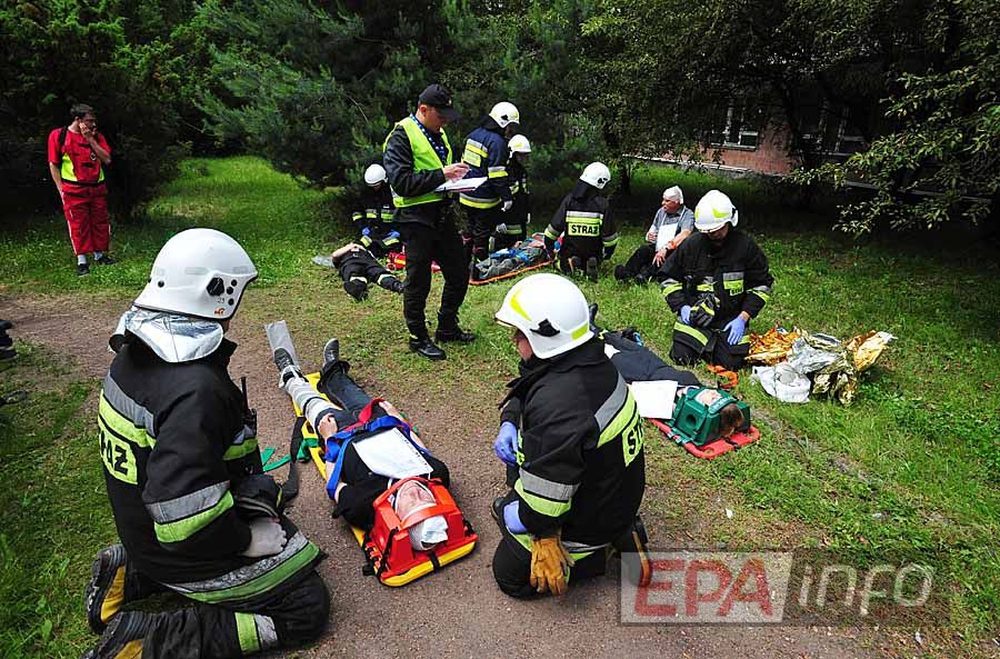 w związku z dużym zadymieniem oddziału urologicznego pacjenci musieli być ewakuowani. Kierujący akcją brygadier Paweł Karasiński uzyskuje od ordynatora urologii informację, że podczas przemieszczania pacjentów wybuchła wśród nich panika i kilkoro z nich doznało obrażeń. Rannymi zajmują się strażacy. Poszkodowani zostają podzieleni według stopnia odniesionych obrażeń. Pomocy udzielają im strażacy oraz ratownicy medyczni.