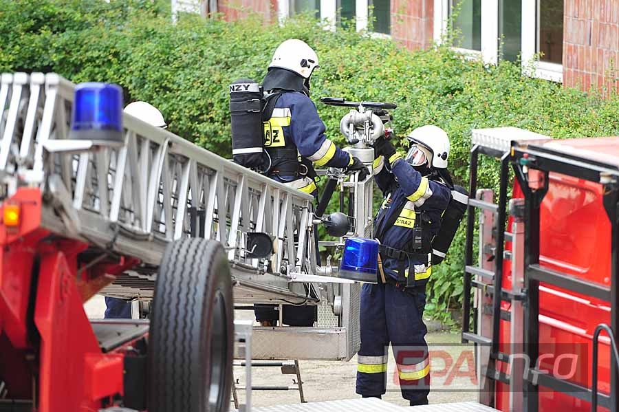 Dziś na trenie Pabianickiego Centrum Medycznego strażacy zawodowcy i ochotnicy mieli manewry. Przeprowadzona została symulacja pożaru w pomieszczeniu na ostatnim piętrze budynku.