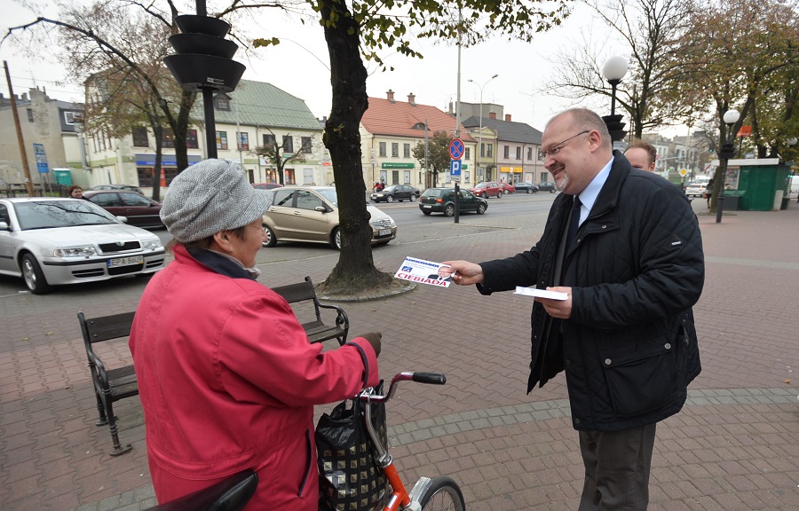Po konferencji działacze PiS rozdawali ulotki wyborcze przed Urzędem Miejskim.