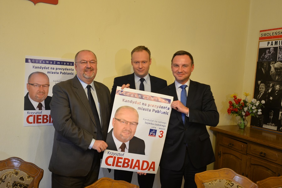 Na konferencję do Pabianic przyjechał europoseł Andrzej Duda oraz poseł Marcin Mastalerek. – Pabianice potrzebują gospodarza, człowieka uczciwego, oddanego, który będzie patriotą lokalnym – mówił Duda. – Wybór Krzysztofa Ciebiady to jest wielka szansa dla Pabianic.