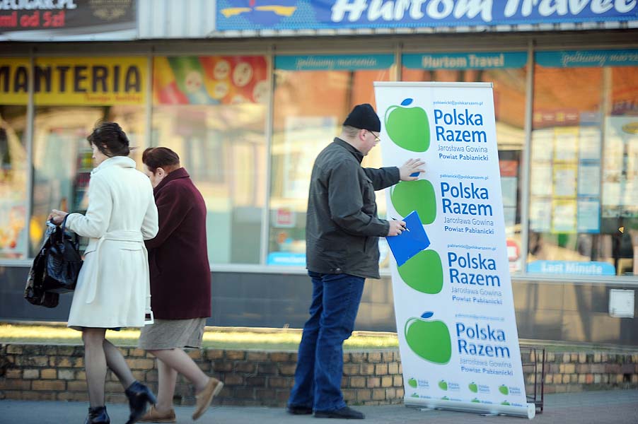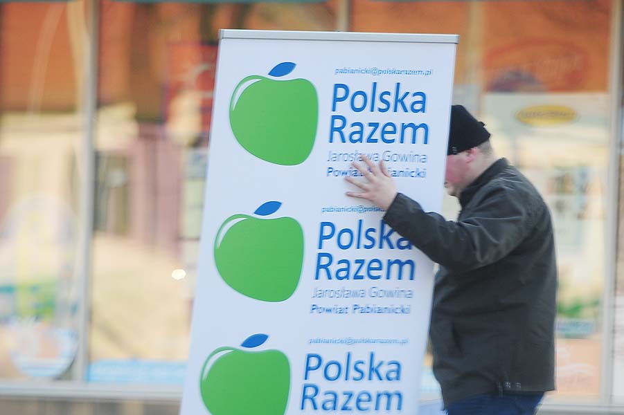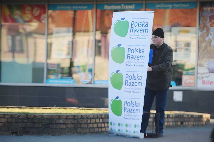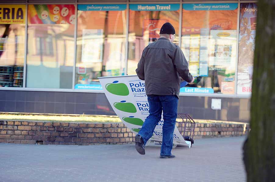 W środowe popołudnie, młody działacz ugrupowania Polska Razem Jarosława Gowina zbierał podpisy przed Urzędem Miejskim. Na chodniku rozstawił pionowy baner reklamowy tzw. roll up z logo partii, który miał przyciągnąć uwagę przechodniów. Niestety, baner sprawił politykowi dużo problemów. Wiatr targał reklamą na wszystkie strony i Antoni Hodak, nie mógł do końca skupić się na swoim zadaniu.