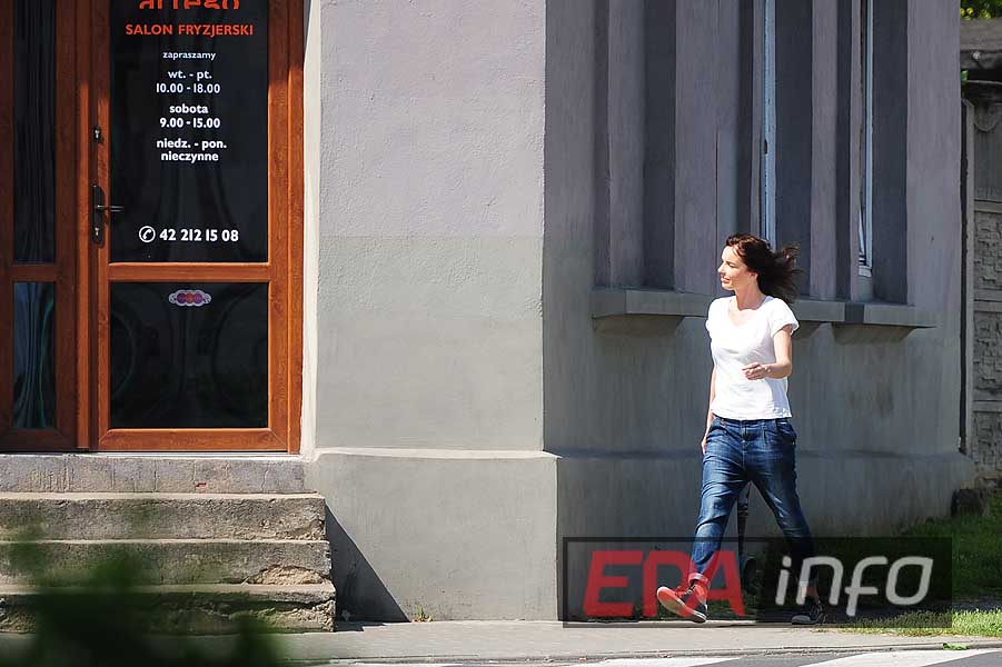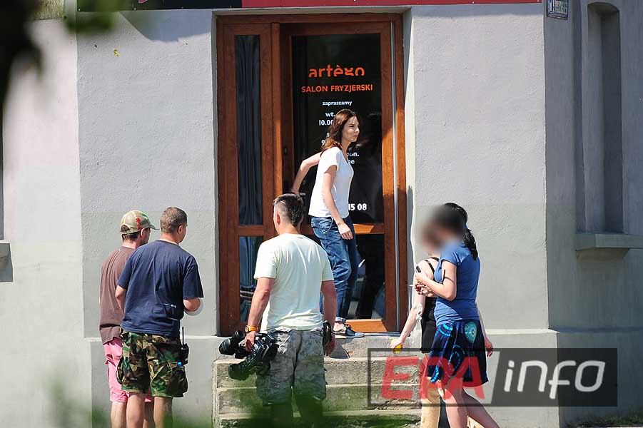Aktorka przyjechała na realizację program „Ostre cięcie” kręconego od czwartku w salonie fryzjerskim przy ul. 20 Stycznia (róg Jaszuńskiego). W każdym odcinku programu emitowanego przez telewizję TTV „Ostremu cięciu” podda się jedna z gwiazd. To ona zadecyduje czy salon z ul. 20 Stycznia otrzyma rekomendację. Odcinek z Pabianic będzie emitowany we wrześniu.