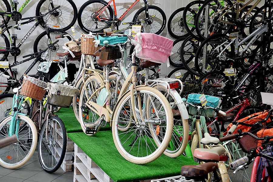 – Bardzo dużym zainteresowaniem i powodzeniem cieszą się rowery miejskie, które charakteryzują się wygodną pozycją jazdy. W naszej ofercie jest ogromna paleta kolorystyczna marki Storm. To aż 12 zestawień kolorystycznych – mówi właściciel sklepu Alpina. – Hitem tego roku jest również Le Grand, model Lilly 7, stylizowany na retro, na 28 calowych kołach, wyposażony w 7 biegów, dynamo i amortyzatory.