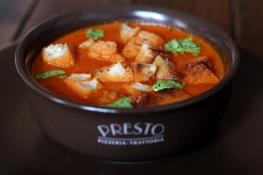 – Ponieważ regularnie odwiedzają nas stali klienci, z myślą o nich przygotowujemy też menu tematyczne – mówi Pani Ewa. – Obecnie w Presto królują pomidory i papryka. Na dobry początek krem paprykowo-pomidorowy z mozzarellą, zielonym pesto i ziołowymi grzankami. Dla fanów makaronów pappardelle z ostrym salami, pieczoną papryką i cukinią, zaś dla miłośników pizzy – połączenie sosu pomidorowego, mozzarelli, pieczonej papryki, salami i ricotty.