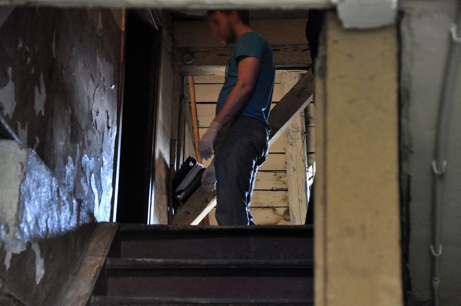 Przed południem pracownicy „mieszkaniówki” w asyście strażników zapukali do mieszkania przy ulicy Zamkowej 9. Powodem interwencji w mieszkaniu na poddaszu było zalanie sufitu sąsiadów mieszkających piętro niżej. Ponieważ w środku nikogo nie zastano wyważono drzwi.