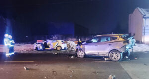 Kierowca wypadł z auta po czołowym zderzeniu z radiowozem