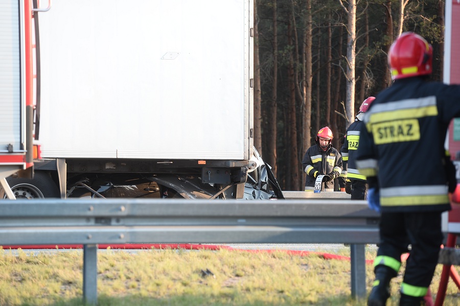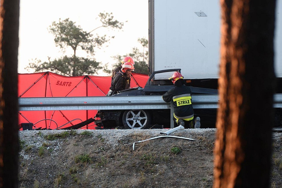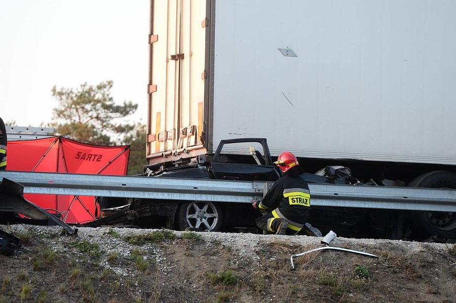 Do wypadku doszło w okolicach miejscowości Barycz na nitce w stronę Rzgowa. Samochód nie zachował odpowiedniej odległości przed jadącą przed nim ciężarówką i wbił się pod naczepę. Na miejscu trwa akcja strażaków, którzy próbują wydobyć wrak samochodu.