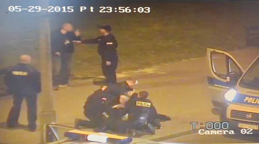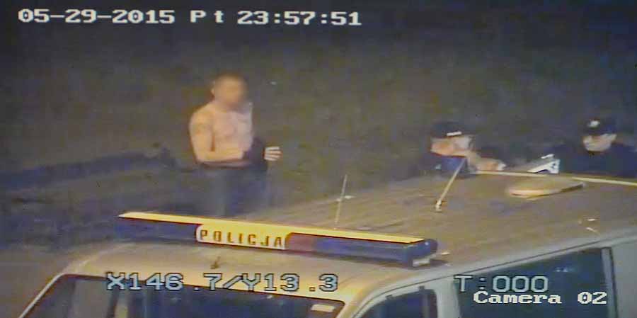 Przed SDH przyjechały kolejne radiowozy. Jeden z mężczyzn został obalony na ziemie i obezwładniony. Wtedy do akcji ruszył drugi agresor. Zaczął odgrażać się policjantom i przeszkadzał w wykonywaniu obowiązków służbowych. Mężczyzna przepychał się z funkcjonariuszami i zdejmował koszulkę. Po chwili również został obezwładniony.