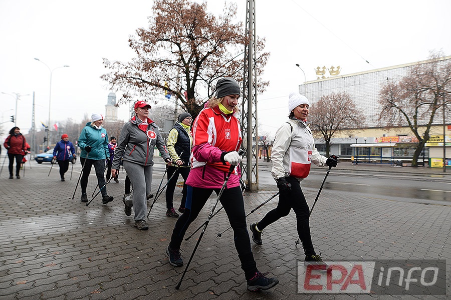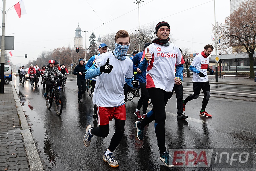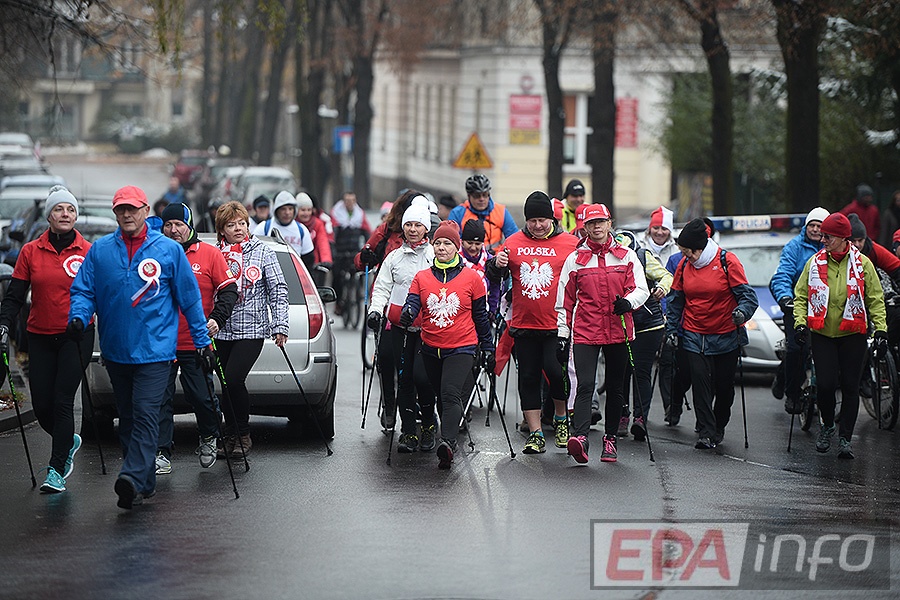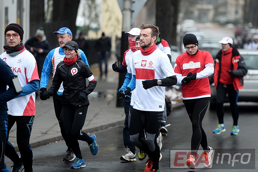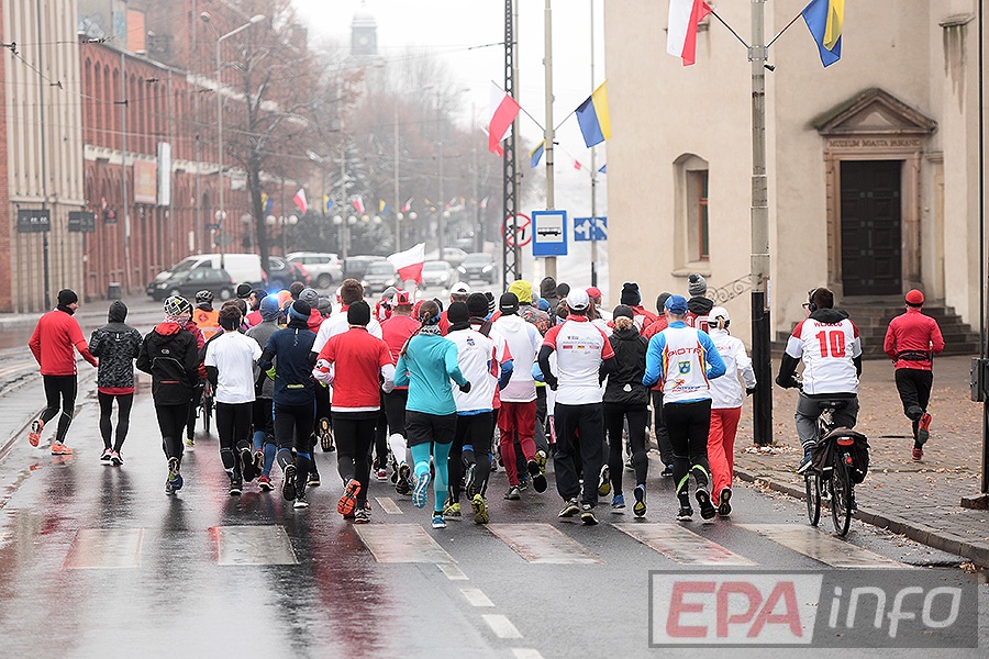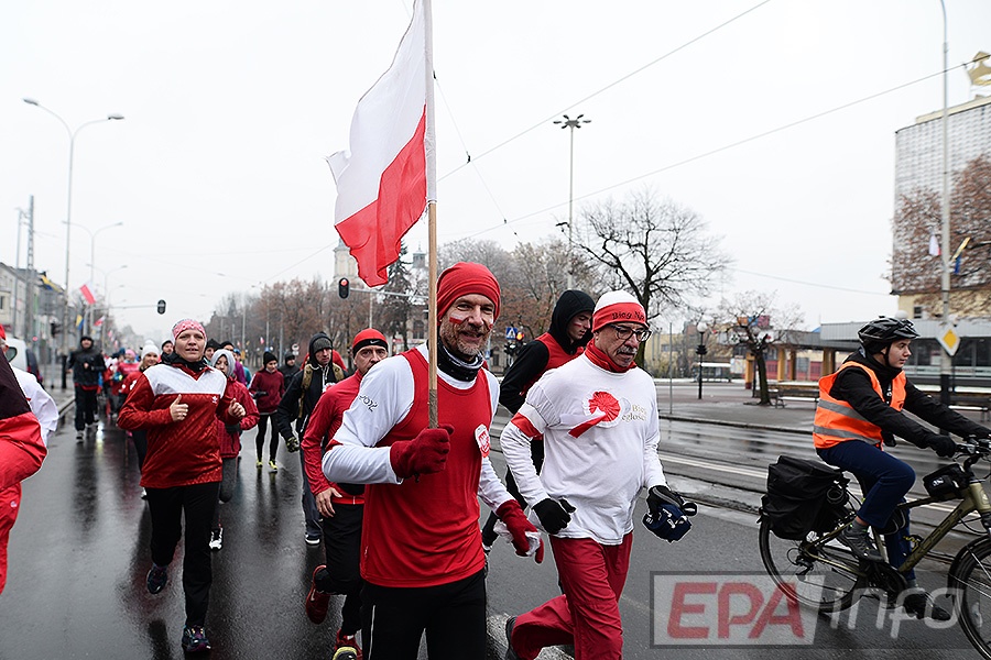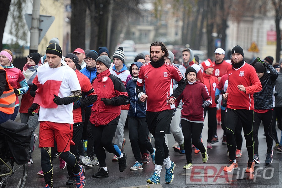 Biegacze, chodziarze nordic walking i rowerzyści wystartowali o godz. 11.11 z ul. Gdańskiej. Trasa biegu to około 11 kilometrów (9 km dla nordic walking) – Gdańska, Zamkowa, Łaska (Park Wolności), Chechło Pierwsze (Witkiewicza, Karolewska, Gojawiczyńskiej), 15 Pułku Piechoty „Wilków”, Wiejska, Jana Pawła II, Świętokrzyska, Widok, Cmentarz Komunalny, Kilińskiego, Moniuszki, Kościuszki, Zamkowa, Stary Rynek. Koniec biegu przy pomniku Legionisty.