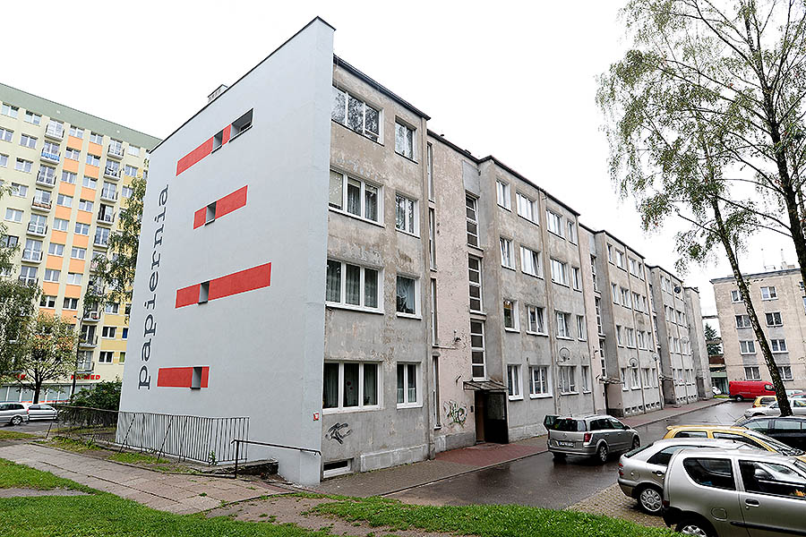 Właśnie zakończył się pierwszy etap termomodernizacji. Wyremontowana została szczytowa ściana budynku – od strony północnej, która była w najgorszym stanie i zimą przymarzała. Na elewacji został umieszczony wielki napis „Papiernia”.