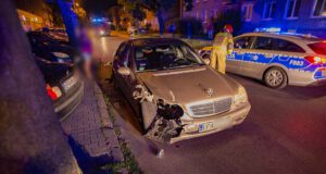 Golf roztrzaskany na drzewie. Kierowca pijany