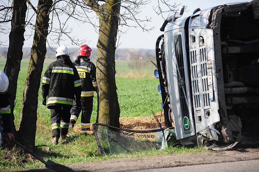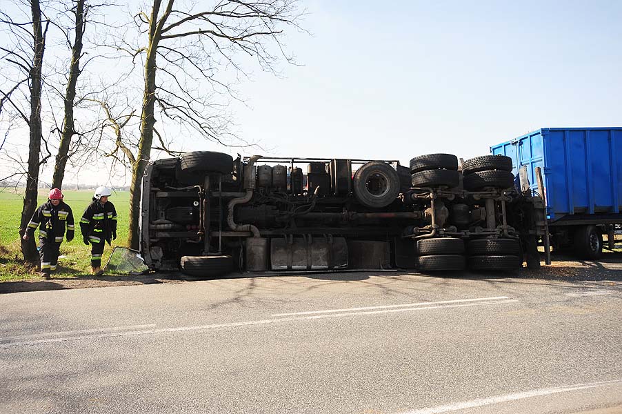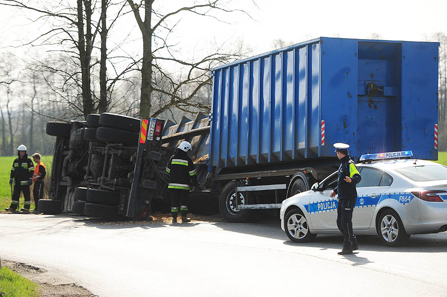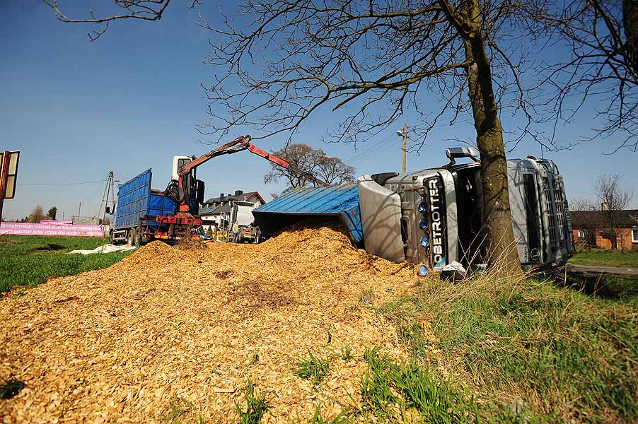 Około godz. 11.00 ciężarówka na częstochowskich numerach rejestracyjnych jechała od Konstantynowa w stronę Pabianic. Kierowca za ciągnikiem siodłowym z naczepą miał podpiętą przyczepę. Na ostrym zakręcie w Porszewicach wpadł do rowu. Z naczepy wysypały się przewożone trociny. Na miejscu jest straż pożarna i policja. Są lekkie trudnienia w ruchu.