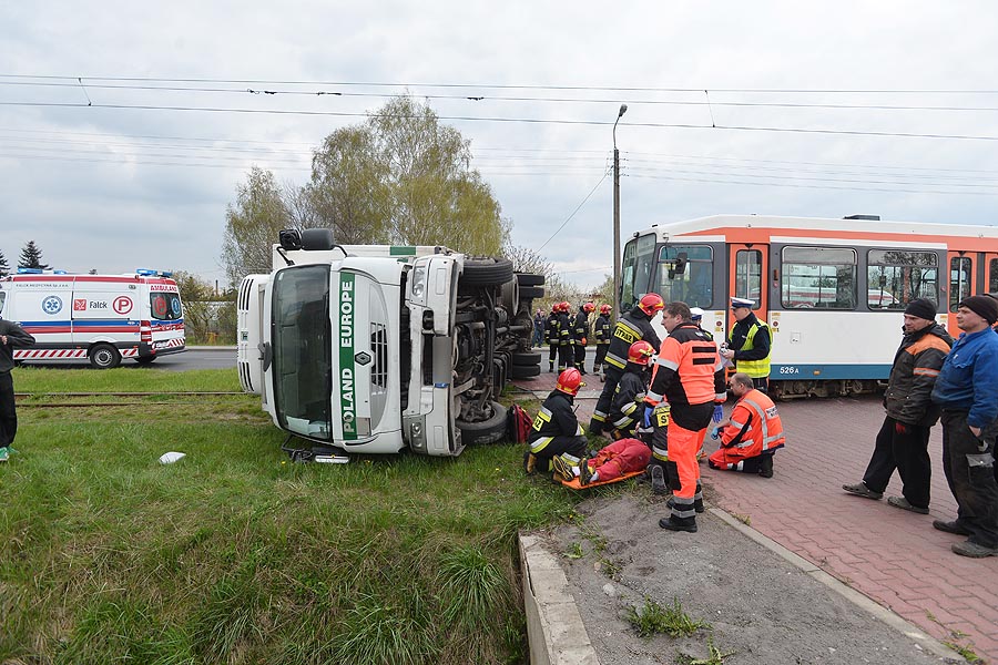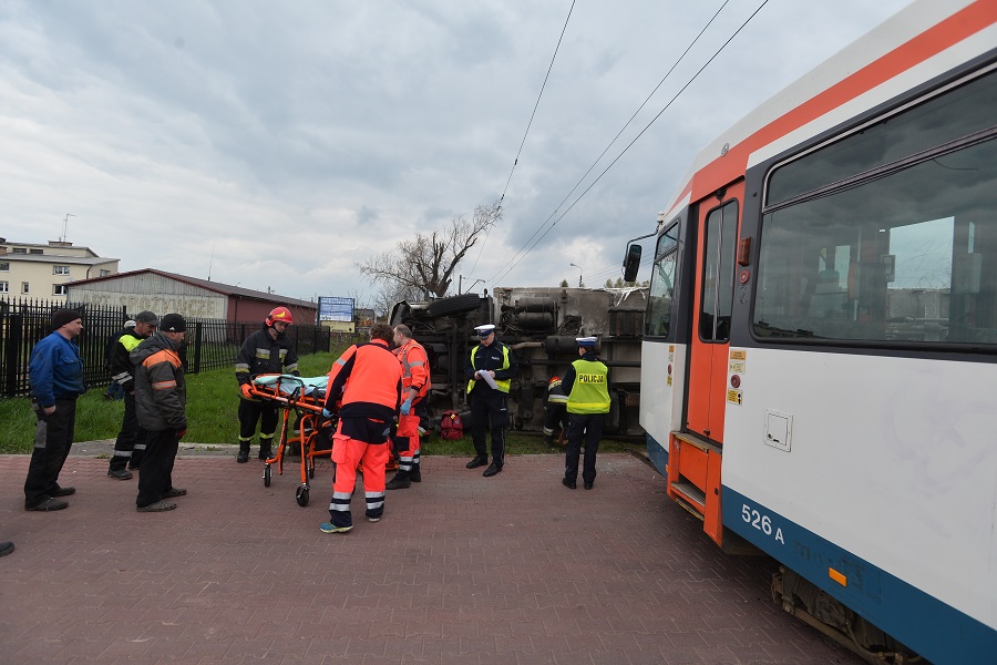 Około godziny 14.00 doszło do zderzenia samochodu ciężarowego z tramwajem linii 41. Kierowca ciężarówki trafił do szpitala.