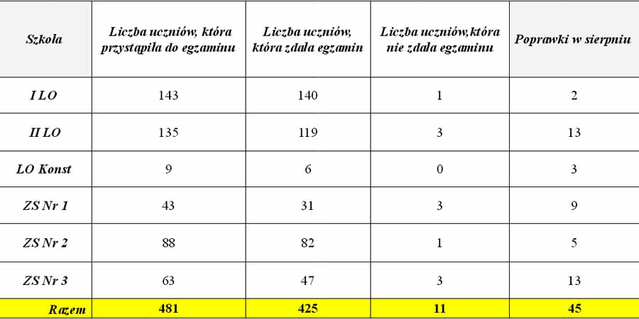 Najsłabiej było w Zespole Szkół nr 3 przy ulicy Gdańskiej. Tam na 63 piszących zdało 47 (74,6 %).