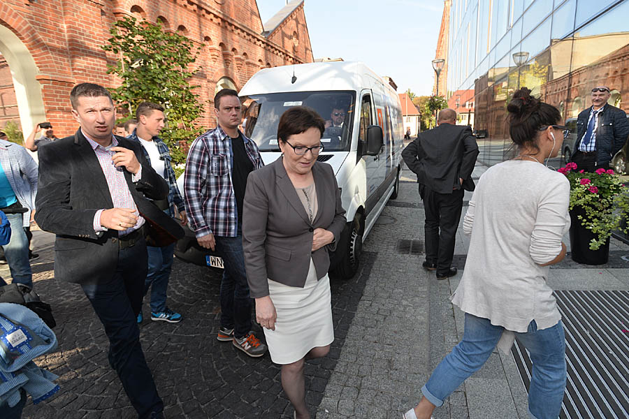Szefowa rządu do Pabianic przyjechał z 30-minutowym opóźnieniem. Bus, którym podróżuje sztab wyborczy Platformy Obywatelskiej, dowiózł panią premier pod same drzwi, prowadzące do sali konferencyjnej hotelu Fabryka Wełny. Już około godzinę przed jej przyjazdem, całą ulicę Lipową obstawili funkcjonariusze Biura Ochrony Rządu. Na spotkanie z Ewą Kopacz przyszli najważniejsi lokalni działacze PO i lokalni biznesmeni. Prezydent Pabianic przywitał dzisiejszego gościa kwiatami.