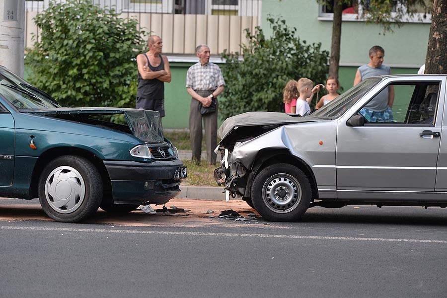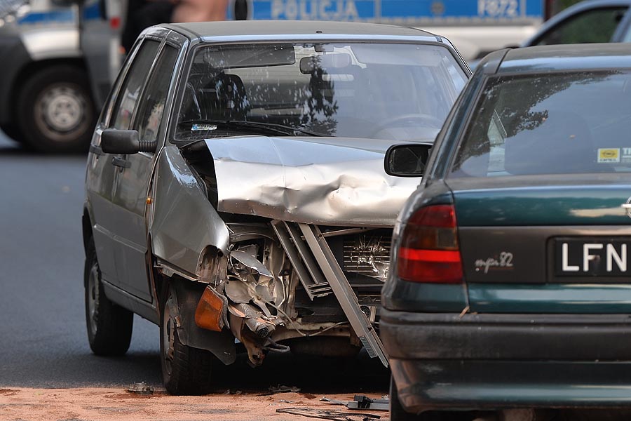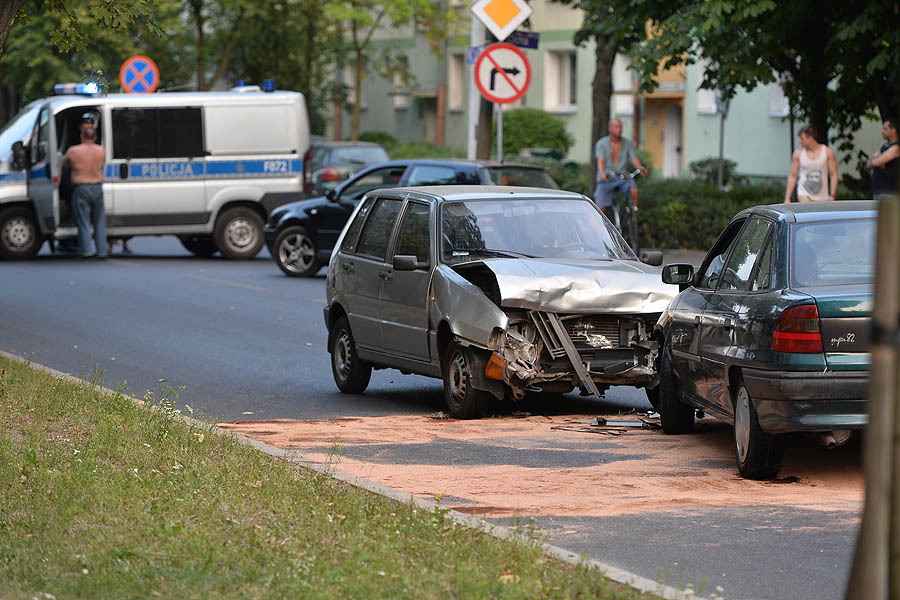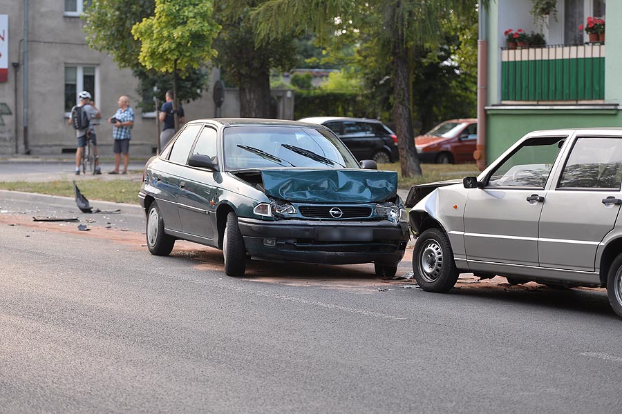 Opel Astra zderzył się czołowo z Fiatem Uno na wysokości przystanku przy ul. Konopnickiej.