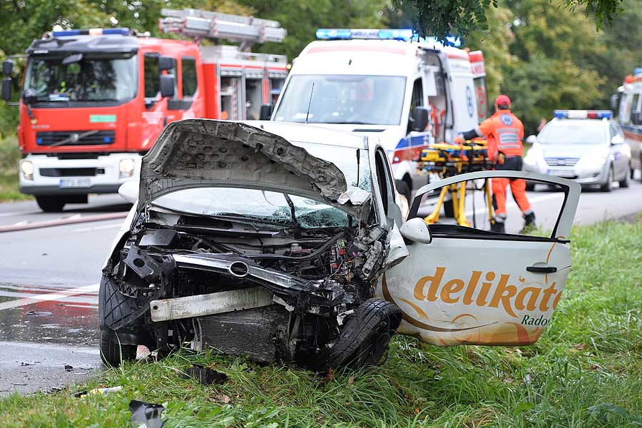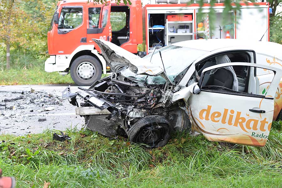 Tuż za przejazdem kolejowym na Klimkowiznę zderzył się Peugeot i Opel. Na miejsce przyjechały dwa zespoły pogotowia ratunkowego.Młodą kobietę kierującą Oplem szybko zabrano do szpitala. Kierowcę Peugeota zgnieciona blacha uwięziła w aucie. Strażacy rozcinali karoserię kilkanaście minut. Droga jest całkowicie zablokowana. Policja kierują na objazd Klimkowizną.