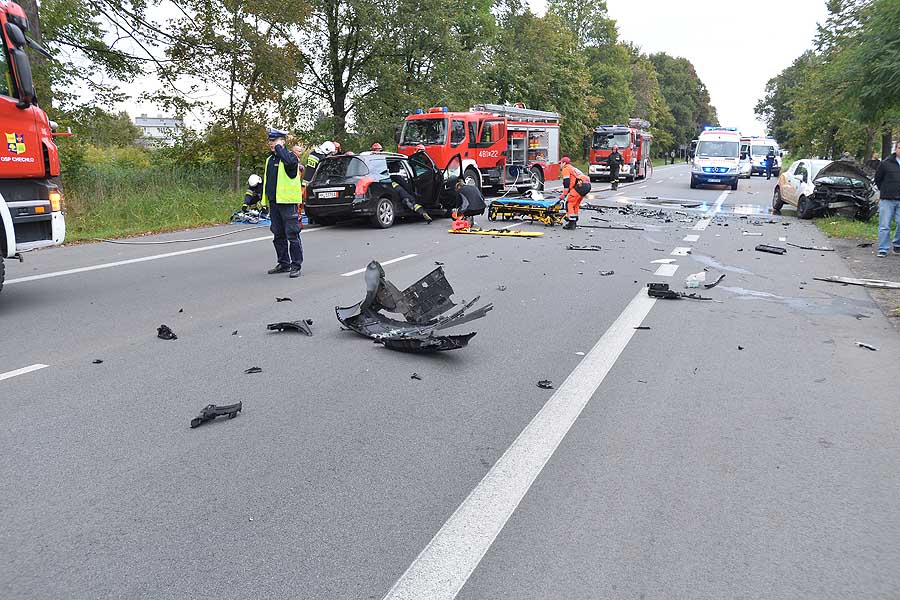 Tuż przed godziną 17.00 doszło do poważnego wypadku w Chechle Pierwszym. Strażacy rozcinali blachę jednego z aut.