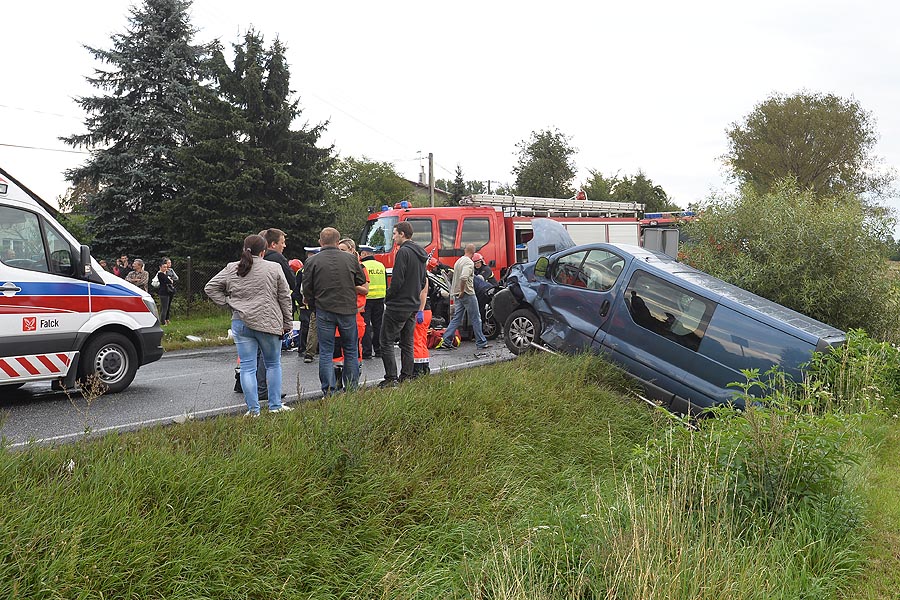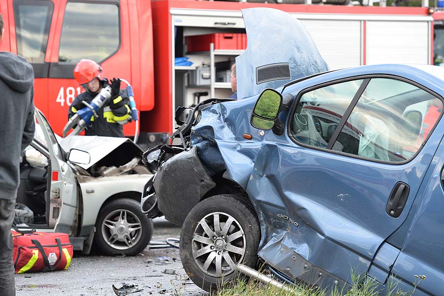 Na jednym z zakrętów w miejscowości Świątniki czołowo zderzyły się Renault Traffic i Łada. Cztery osoby trafiły do szpitala.