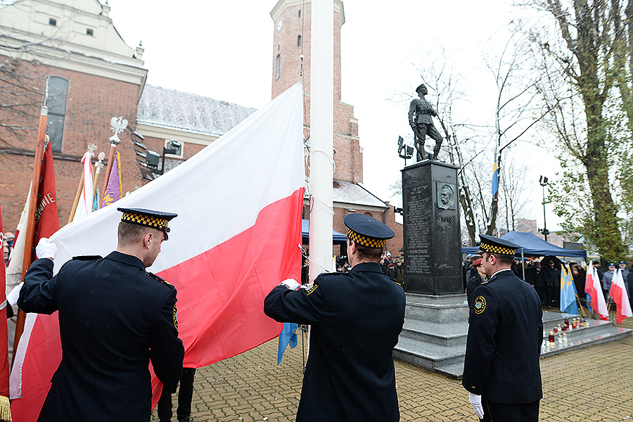 Obchody tradycyjnie rozpoczęły się od mszy św. Następnie poczty sztandarowe, delegacje i mieszkańcy zgromadzili się na placu przed pomnikiem Legionisty. Tam przemawiali: prezydent Grzegorz Mackiewicz i starosta Krzysztof Habura.