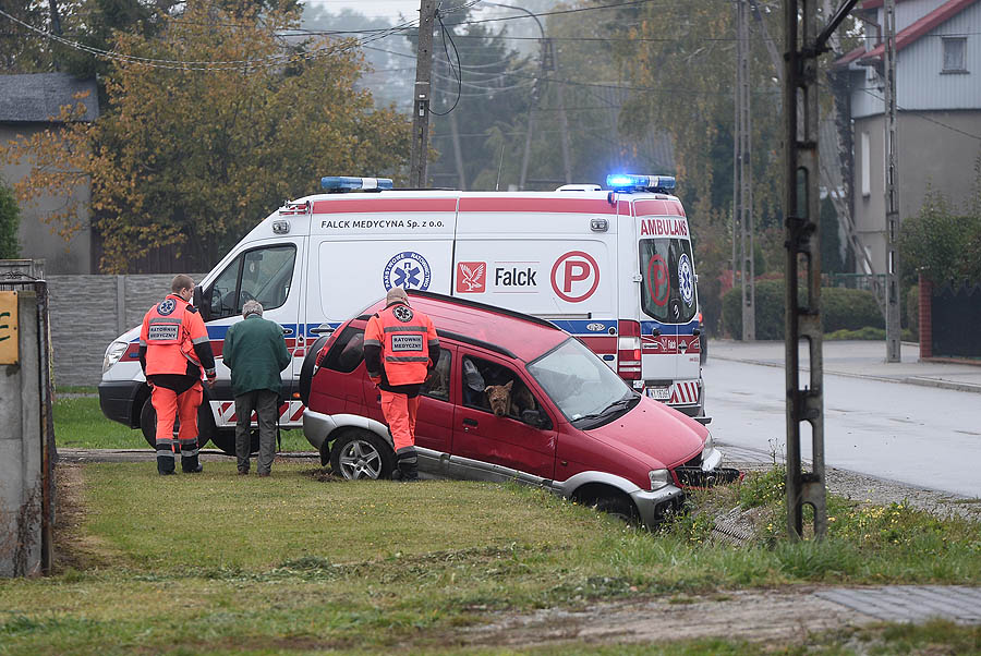 Do kolizji doszło po godz. 15.00. Kierowca Skody próbował włączyć się do ruchu i nie spostrzegł jadącego za nim Daihatsu. Rozpędzona terenówka uderzyła w tył Skody i koziołkowała. Auto wpadło do rowu. Na miejsce przyjechało pogotowie ratunkowe, ale 72-letni kierowca z Daihatsu nie potrzebował pomocy lekarskiej. Obrażeń nie odniósł również podróżujący z nim pies.