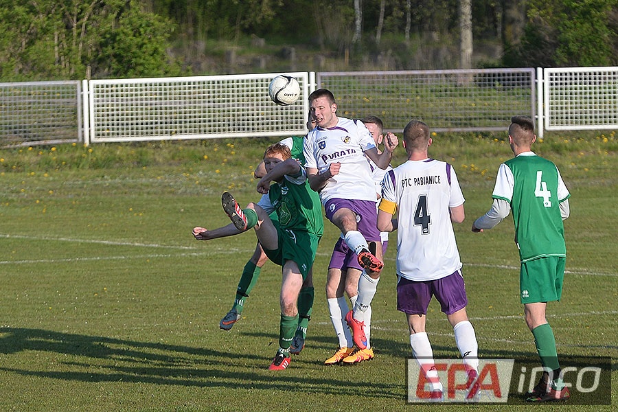 Dopiero po pół godziny gry pierwszą okazję stworzyło PTC. Piotra Szynkę wybiegającego sam na sam z Adrianem Włodarczewskim w ostatniej chwili dogonił jednak Piotr Maślakiewicz i ofiarną interwencją zablokował strzał napastnika PTC. W odpowiedzi w 36. min z dystansu przymierzył Mateusz Kosmala, a piłka przeleciała tuż obok słupka bramki Dawida Sulimy.