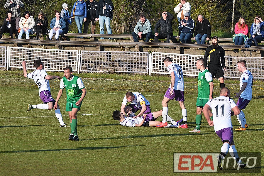 W 24. min bezpardonowo przez Łukasza Sikorskiego wycięty został rozpędzony Dobroszek i kapitan PTC zobaczył żółtą kartkę. „Fioletowi” mieli ogromne problemy z szybkim skrzydłowym Włókniarza co chwila ratując się faulem. Do rzutu wolnego podszedł etatowy wykonawca Mateusz Kosmala, który dośrodkował w pole karne, a bliski przejęcia piłki był Piotr Maślakiewicz.
