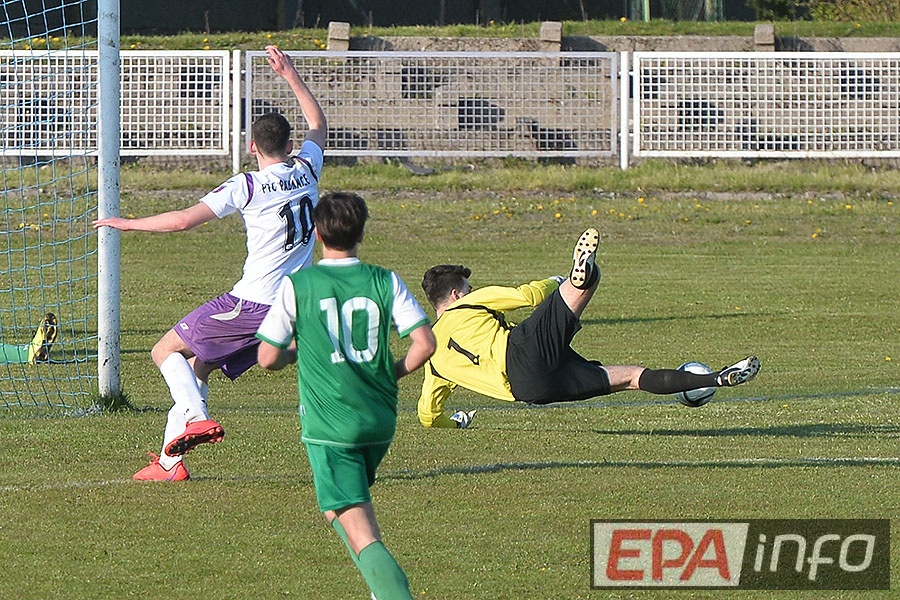 W 40. min mocno zakotłowało się pod bramką PTC po dośrodkowaniu Mateusza Kosmali, ale obrońcy gospodarzy ostatecznie wyekspediowali piłkę poza pole karne. Dwie minuty później tego nie zrobili i Damian Madaj otworzył wynik spotkania. Pomocnik Włókniarza wykazał najwięcej sprytu po zamieszaniu w polu karnym wybiegając obrońcom PTC zza pleców i zamykając dośrodkowanie na dalszy słupek. Po zdobyciu gola Madaj podbiegł do kibiców Włókniarza i się im ukłonił.