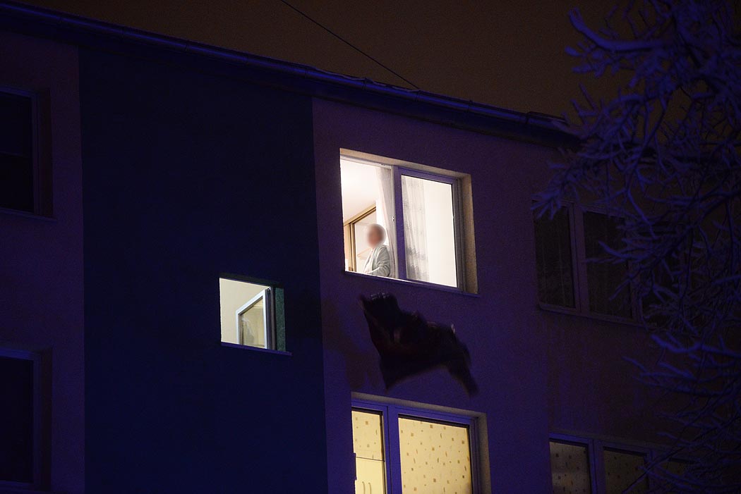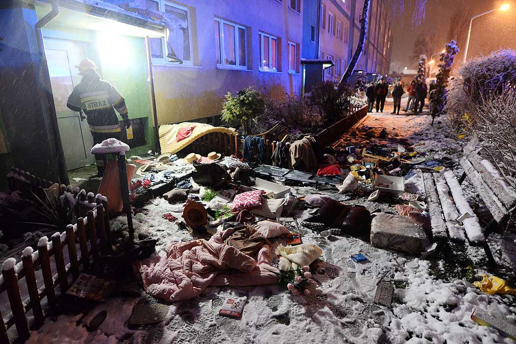 Przechodnie powiadomili służby o kobiecie miotającej przedmiotami przez okno. Na miejsce wysłano policję, straż pożarną i pogotowie. Akt desperacji trwał kilkanaście minut. W tym czasie strażacy otwierali drzwi przy pomocy wyważarki i łomów. Rozstawiono też skokochron. Finalnie ratownikom udało dostać się do środka. W mieszkaniu była jeszcze jedna osoba. Najprawdopodobniej matka kobiety.