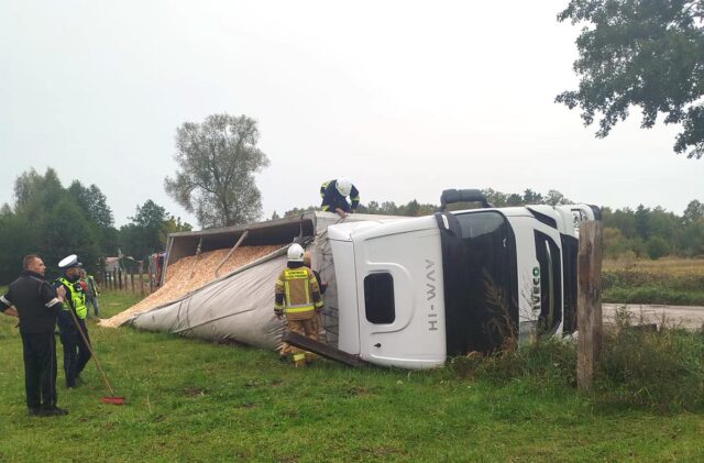 8 października 2025 roku, około godziny 15:48, służby ratunkowe zostały zadysponowane do miejscowości Markówka (gm. Dobroń), gdzie doszło do nietypowego zdarzenia drogowego. Ciężarówka przewożąca trociny przewróciła się po tym, jak pod pojazdem zapadła się jezdnia.