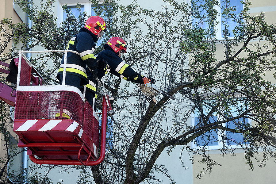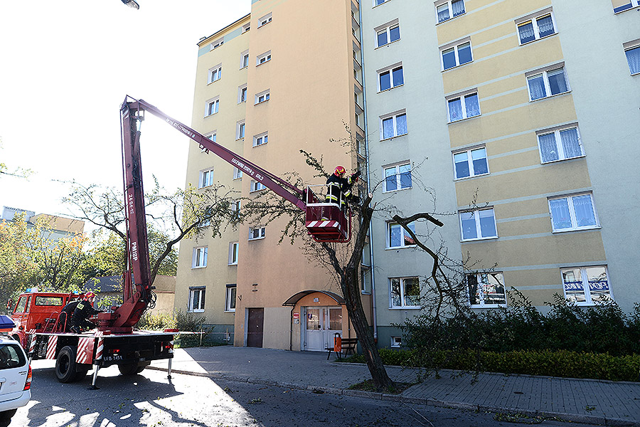 Drzewo rosło na chodniku przed jednym z bloków przy ul. Wyszyńskiego. Silna wichura, która nawiedziła w nocy nasz region uszkodziła leciwy konar. Na miejscu działał jeden zastęp strażaków i podnośnik. Strażacy przy pomocy piły spalinowej usunęli zagrożenie. Ulica Wyszyńskiego była zablokowana na odcinku od Broniewskiego do Skłodowskiej przez około pół godziny.