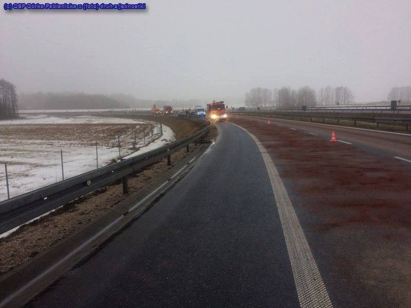Dwie minuty później, w jej auto uderzył 21-latek kierujący Fordem. Mężczyzna również wpadł poślizg przez plamę oleju.