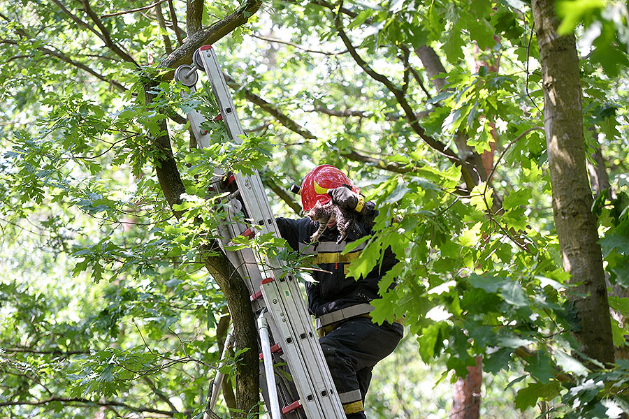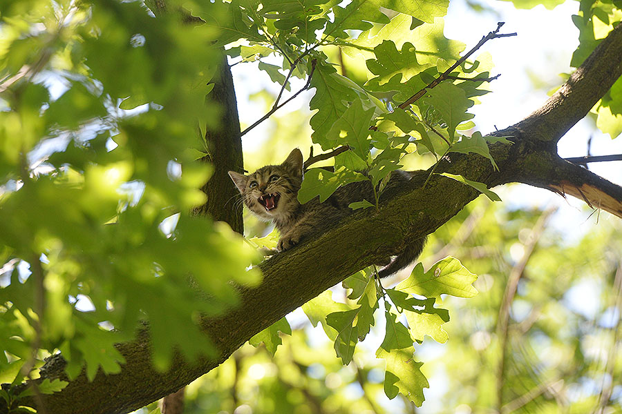 Dwoje pabianiczan spacerujących po Strzelnicy usłyszało głośne miauczenie. Na drzewach siedziały kocięta.