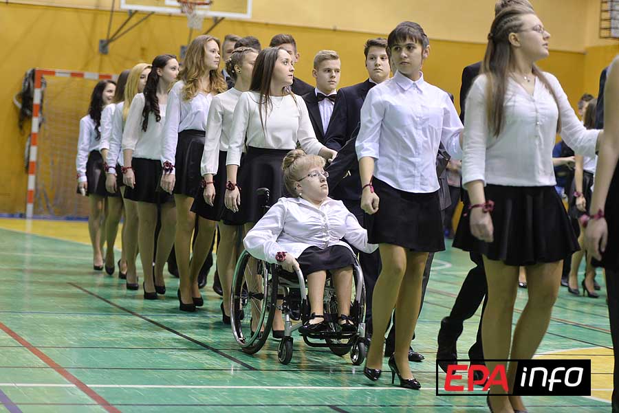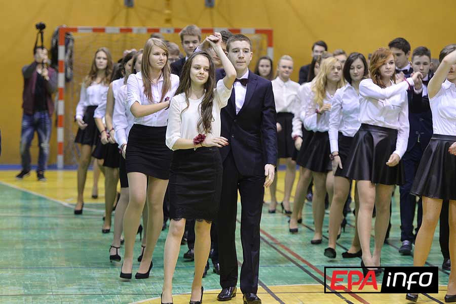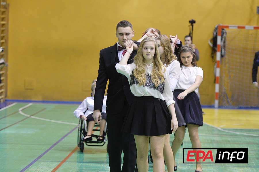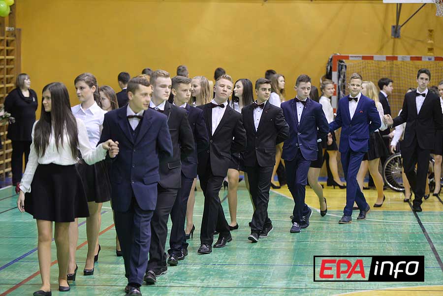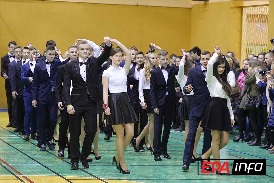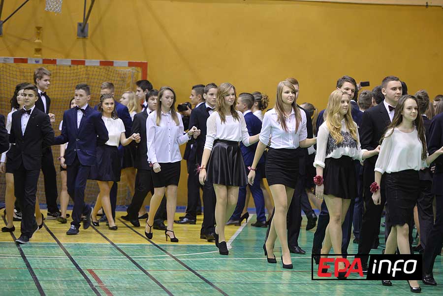 Uczniowie trzecich klas Gimnazjum nr 3 polonezem rozpoczęli swój bal. Tańczyły 34 pary. Zabawa potrwa do godz. 22.00.
