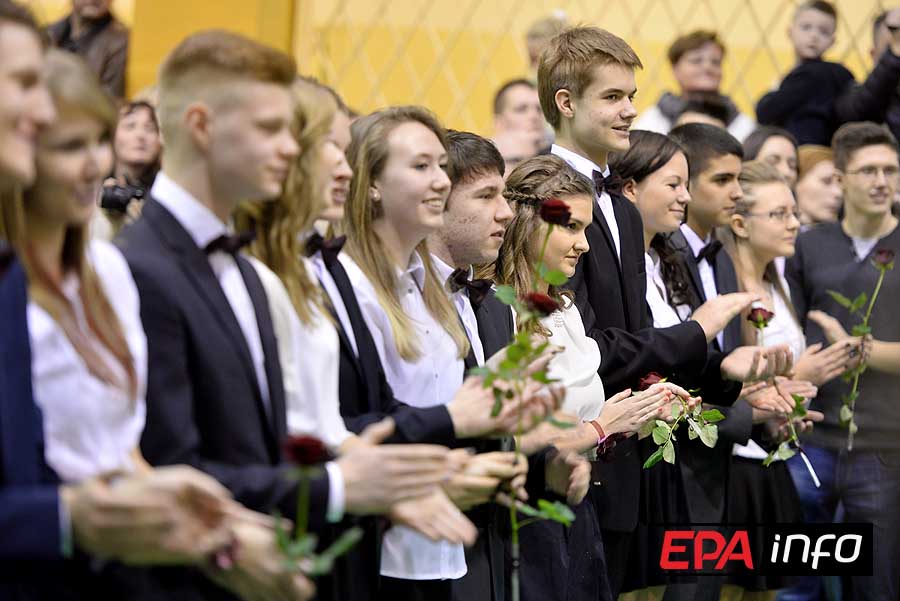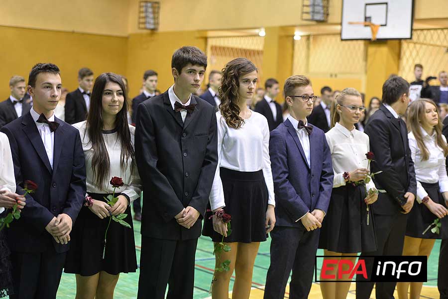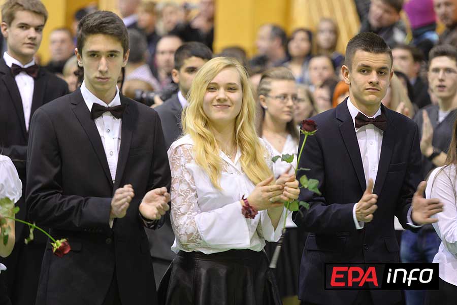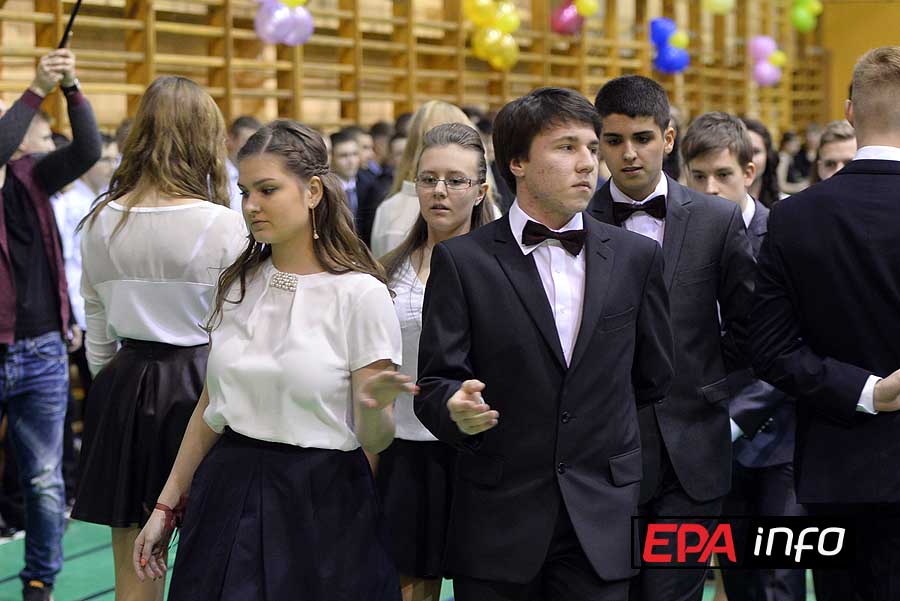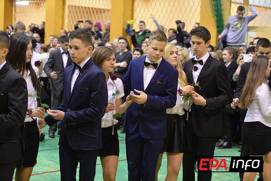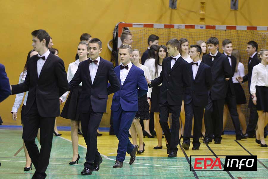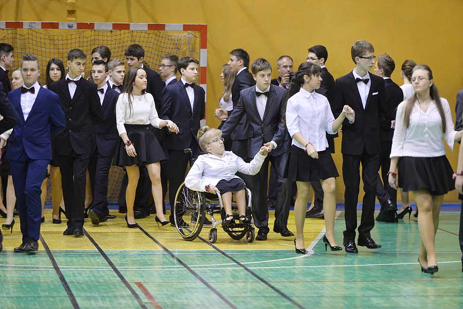 Uczniowie trzecich klas Gimnazjum nr 3 polonezem rozpoczęli swój bal. Tańczyły 34 pary. Zabawa potrwa do godz. 22.00.