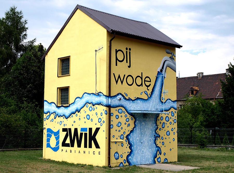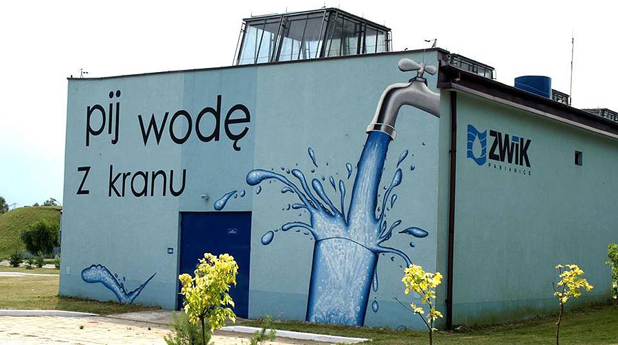 Murale promujące picie wody z kranu wykonał Kruk, czyli znany pabianicki streetartowiec. Prace trwały około dwóch tygodni. Wcześniej pracownicy ZWiK-u przygotowali grunt, a resztą zajął się uliczny artysta.