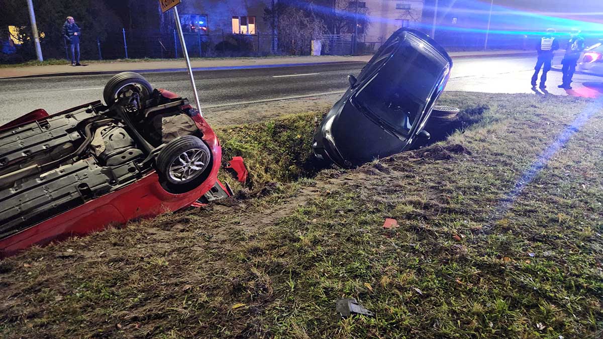 Po zderzeniu oba pojazdy wypadły z drogi do rowu, a Fiat dachował.