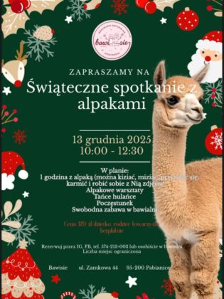 III. Alpakowe warsztaty, tematyczny poczęstunek dla dzieci i… alpakowy, wspólny taniec na zakończenie tego wyjątkowego spotkania.