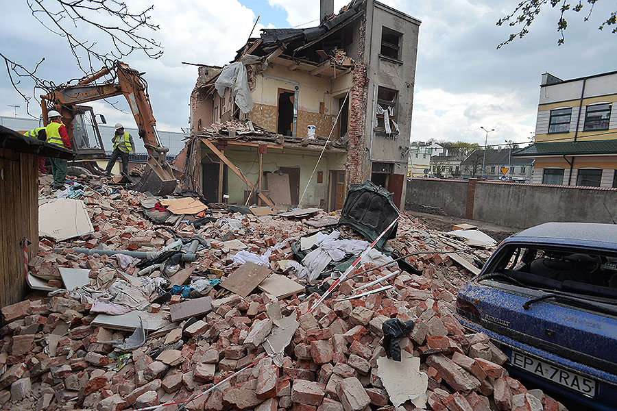 Wczoraj (18 kwietnia) rozpoczęła się rozbiórka kamienicy przy Bagatela 2 na podstawie decyzji Powiatowego Inspektora Nadzoru Budowlanego. Najdalej do końca tygodnia teren zostanie uprzątnięty. Budynek był ubezpieczony – Zakład Gospodarki Mieszkaniowej zgłosił szkodę do ubezpieczyciela. Rzeczoznawca szacuje wartość strat w budynku. Wstępną wartość ustalono na 300 tys. złotych. Rozbiórka kosztuje 15 tys. złotych.