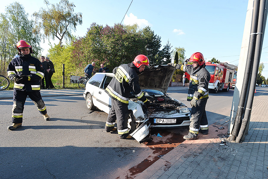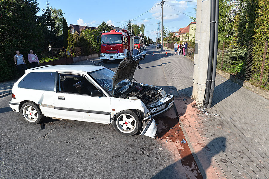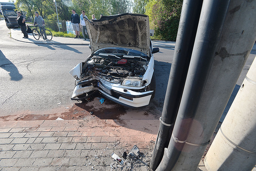 Do wypadku doszło około godz. 17.30 na zakręcie przy ul. Gruntowej. Kierowca jechał od strony krańcówki i zbyt mocno wszedł w zakręt. Szalona jazda zakończyła się na przydrożnym słupie.