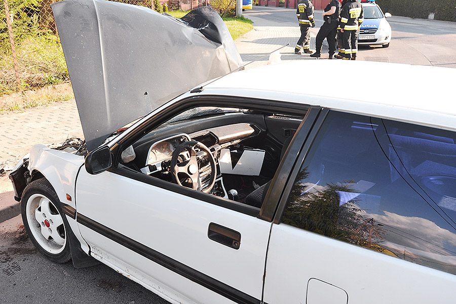 Honda Civic rozbiła się na słupie przy ulicy Karniszewickiej. Kierowca wypadł z zakrętu.