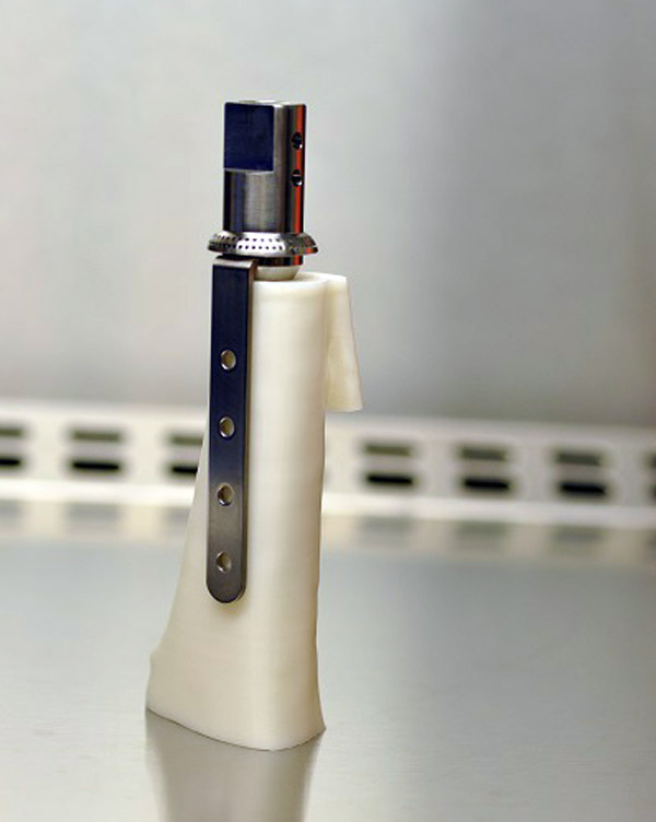 Trójwymiarową wizualizację implantu otrzymali fachowcy z fabryki PAFANA w Pabianicach, która zajmuje się tworzeniem różnych kształtów z metali. Implant wyfrezowano z medycznego tytanu.