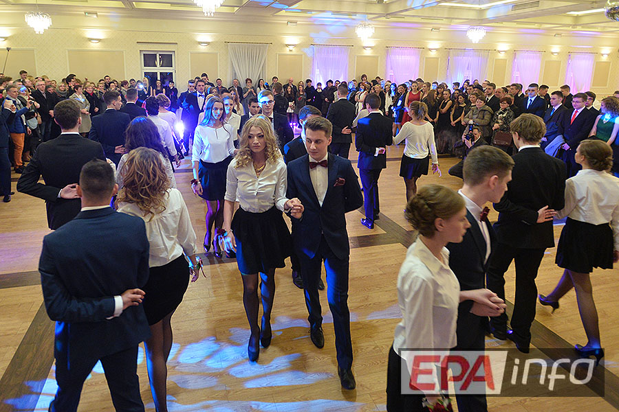 Maturzyści bal zaczęli tradycyjnie – od poloneza. Na parkiecie zaprezentowało się 20 par w 7-minutowym układzie przygotowanym przez Barbarę Szałabską.