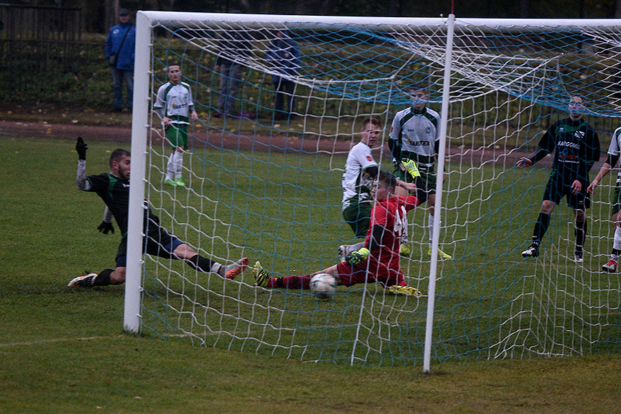 W drugiej połowie zaczęło mocniej padać, ale padły też gole. Od pierwszego gwizdka gospodarze napierali na bramkę gości, co zaowocowało dwoma rzutami rożnymi w pierwszych dwóch minutach. Ale stałe fragmenty nic nie dały. Dopiero w 53. minucie swoje show rozpoczął Tomasz Ostalczyk. Wtedy też ruszył lewą stroną boiska i omijając obrońcę silnym strzałem umieścił piłkę w siatce. 4 minuty później mogło być 2:0, ale Tymon Hartman nie wykorzystał dośrodkowania Macieja Kwaśniaka i trafił w boczną siatkę. W 58. minucie przed szansą stanęli goście i prawie weszli z piłka do bramki, ale na posterunku był Damian Rzeźniczak.