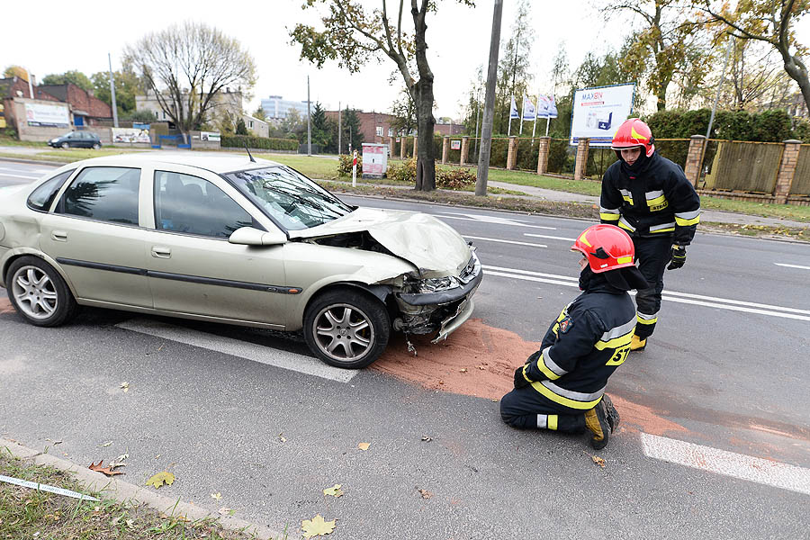 Około godz. 14.00 kierowca Opla jechał ul. Partyzancką w stronę Łasku. Na skrzyżowaniu przy Lumileds pojechał na czerwonym świetle i uderzył w lewy bok Hyundaia Santafe. Uderzenie było tak silne, że ponad 2-tonowa terenówka stanęła na dwóch kołach i obróciła się o blisko 180 stopni.