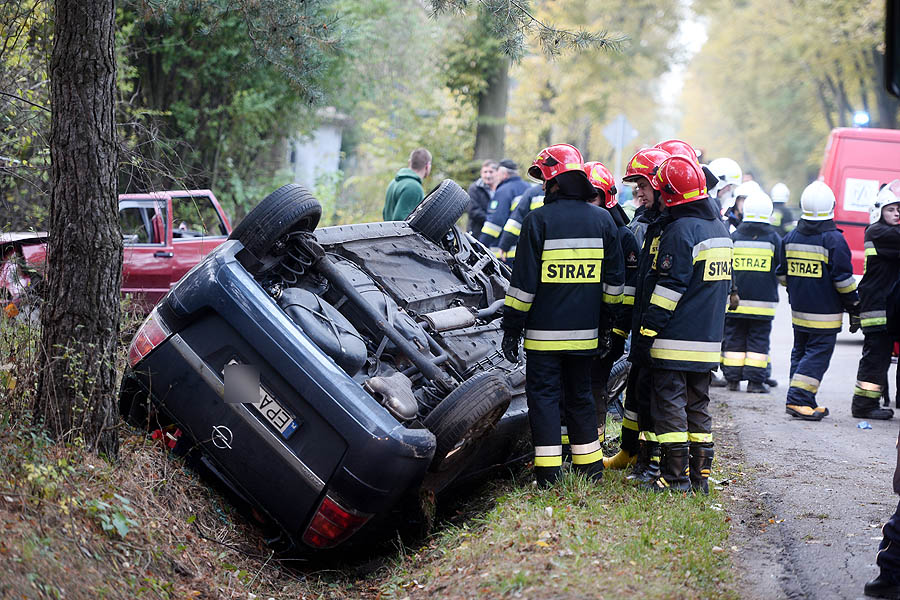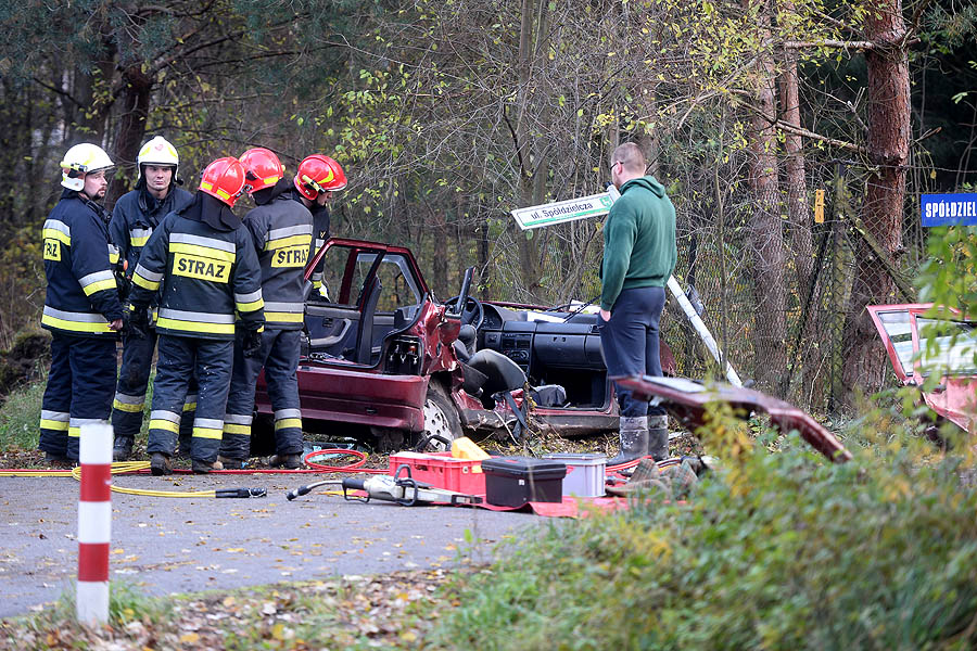 Na skrzyżowaniu ul. Piłsudskiego i Spółdzielczej Fiat Uno zderzył się z Oplem Zafirą. W wyniku zderzenia Fiat wjechał w drzewo. Zakleszczonego w pojeździe kierowcę wydostali strażacy. Musieli użyć hydraulicznego sprzętu. Poszkodowany 64-latek został przetransportowany do pabianickiego szpitala. To on jest sprawcą zdarzenia.