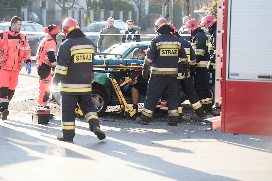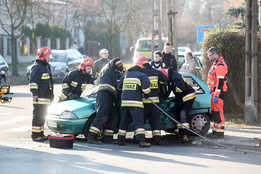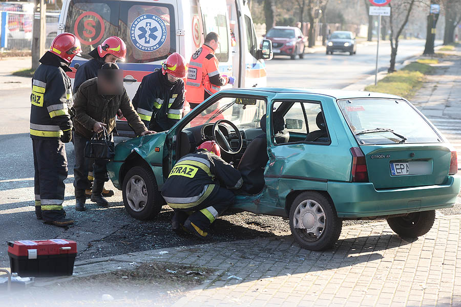 Do wypadku doszło przed godz. 12.00. Ratownicy wezwali na miejsce strażaków, bo 73-letnia kierująca Citroenem została zakleszczona w pojeździe. Strażacy wydostali poszkodowaną przy pomocy narzędzi hydraulicznych. Została zabrana do szpitala. Na skrzyżowaniu są utrudnienia w ruchu.