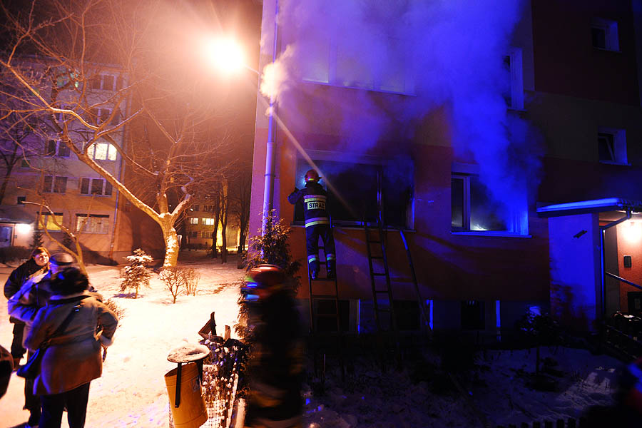 Spłonęło mieszkanie w bloku przy ul. Wileńskiej 49. Właścicielka musiała wyskoczyć przez okno.