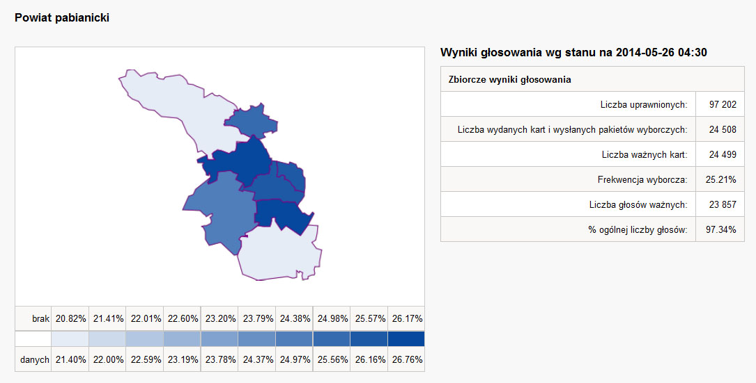 Prawo i Sprawiedliwość wygrywa w powiecie pabianickim, ale w mieście prowadzi Platforma Obywatelska. To wyniki z 97,4 procent obwodów.