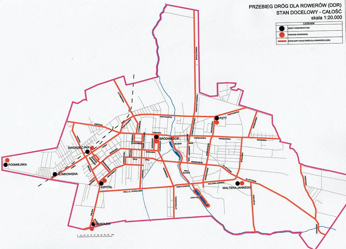 Projekt „Modernizacji i rozwoju komunikacji miejskiej” zakłada budowę ścieżek rowerowych dochodzących do węzłów przesiadkowych komunikacji miejskiej, w tym dworca kolejowego. Budowę podzielono na 9 etapów, które stanowią samodzielną całość i mogą być realizowane oddzielnie. Podstawowym rozwiązaniem zaproponowanym w projektach są ścieżki rowerowe oddzielone od ruchu samochodowego i pieszego z utwardzoną nawierzchnią, a gdzie nie jest to możliwe – ciągi pieszo-rowerowe albo pasy dla rowerów, w ostateczności wyznaczenie strefy dla rowerów przez tzw. sierżanty. Ścieżki będą oświetlone zgodnie z obowiązującymi normami. W miejscach zwiększonego ryzyka i tam gdzie jest planowany wzmożony ruch rowerowy przejazdy rowerowe, a także przejścia dla pieszych, będą dodatkowo doświetlone. Miejsca będą wyznaczone po analizie rozwiązań szczegółowych opracowywanych przez firmę SofBlue na mapach w skali 1:500.